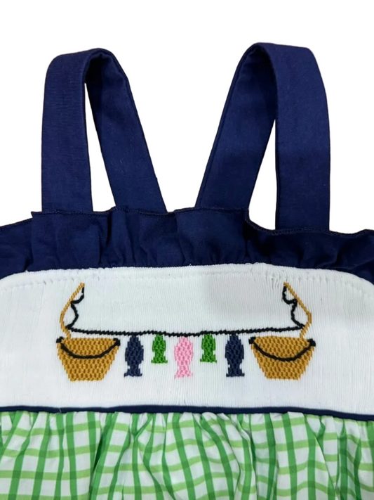 Green Plaid Smocked Santa Dress