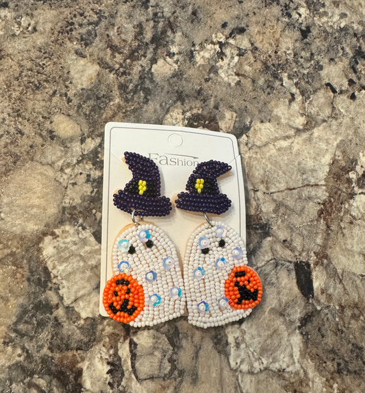 Beaded Ghost Pumpkin Earring