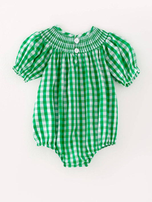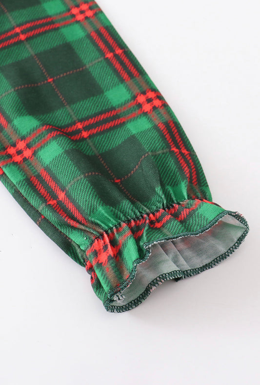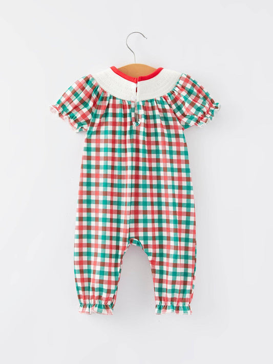 Santa Claus Smocking Green Plaid Embroidery Dress