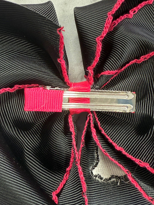 Pink Black Ghost Moonstitch Hair Bow