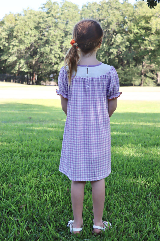 Halloween Girls Purple Smocking Ghost Bow Embroidery Plaid Dress