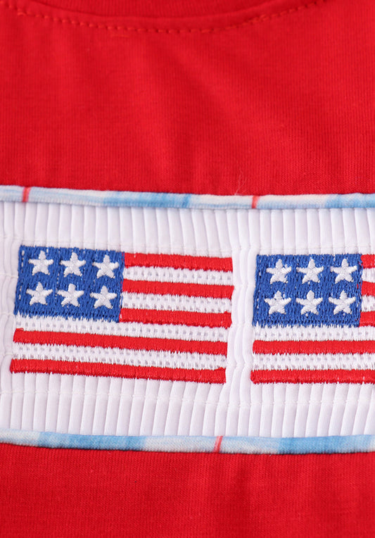 Red Smocked Flag Tee