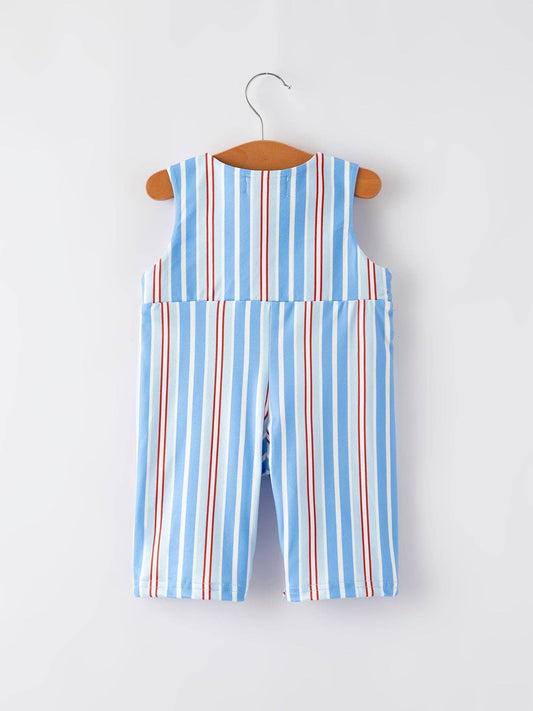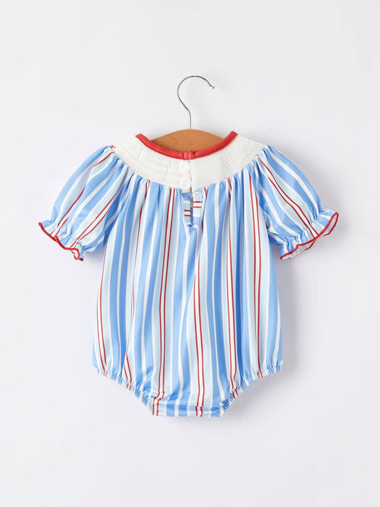 Boys Patriotic Striped Smocking Romper