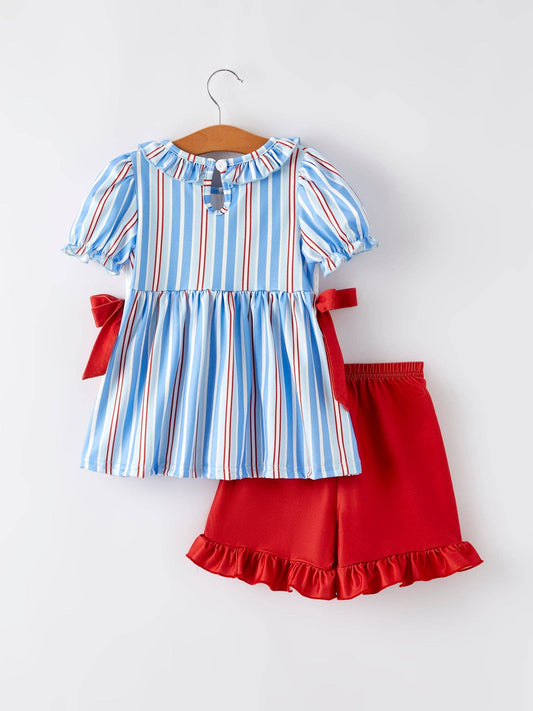 Girls Patriotic Striped Smocking Set