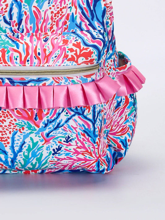 Coral Print Kids Ruffle Backpack